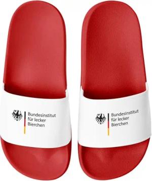 Badeschlappen Badelatschen Unisex mit Aufdruck Bundesinstitut für lecker Bierchen Bedruckt Herren Damen Badeschuhe Männer Frauen Geschenk Rot-weiss 39