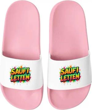 Badeschlappen Lustig Badelatschen mit Spruch SAUFI LETTEN – Party, Urlaub Malle Festival JGA Gadget – Hausschuhe Herren Unisex Rosa-Weiss 37