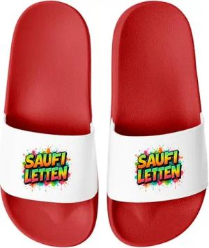 Badeschlappen Lustig Badelatschen mit Spruch SAUFI LETTEN – Party, Urlaub Malle Festival JGA Gadget – Hausschuhe Herren Unisex Rot-Weiss 47