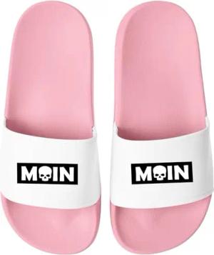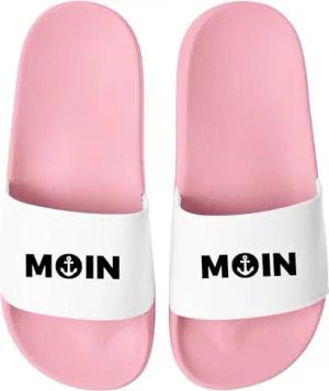 Badeschlappen Moin Aufdruck Anker Logo Badelatschen Unisex Herren Damen Badeschuhe Männer Frauen Urlaubsgadget Rosa-Weiss 47