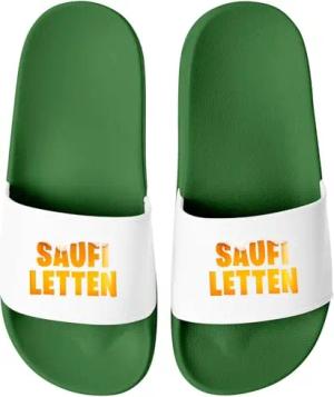 Badeschlappen Lustig Badelatschen mit Spruch SAUFI LETTEN – Party, Urlaub Malle Festival JGA Gadget – Herren Unisex Gruen-Weiss 40