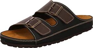 Bio Life Herren Pantolette aus Kunstleder in Schwarz Braun mit Weichfußbett aus Echtleder. schwarz/braun Gr. 45