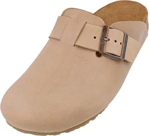 Porto Eleganter Clog aus Leder mit Gummisohle und Kork Latex Fußbett Hausschuh Unisex Cappucino (1797), Gr. 36