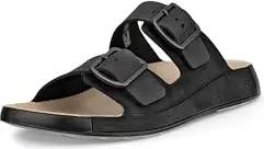 Cozmo Herren-Sandale mit zwei Riemen, Schnalle, schwarzes Nubukleder, 12/12.5 UK