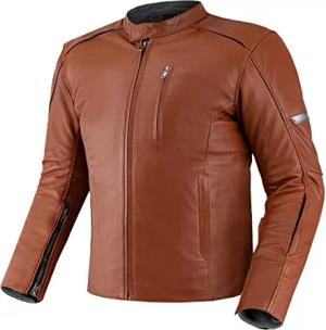HUNTER Motorrad Jacke Herren mit Protektoren Leder Rückenprotektor Motorradjacke Sommer Schutzjacken Lederjacke Protektorenjacke Sommerjacke Stadt Touren (Männer, Braun, L)
