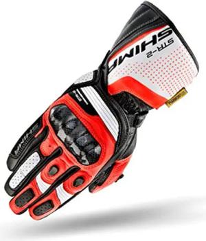 STR-2 Motorradhandschuhe Herren - Touchscreen, Sommer, Sport Leder Handschuhe mit Carbon Knöchelprotektor, Handflächen- und Fingerschieber, Verstärkte Handfläche (Red Fluo, 3XL)