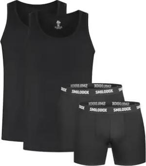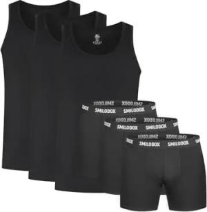 Herren Unterhemd & Boxershorts 2er und 3er Set - Atmungsaktives Langes Unterhemd zum Einstecken, Mittellange Boxershorts, Hautfreundliche Unterhosen Tank Top, Größe:S, Color:Schwarz
