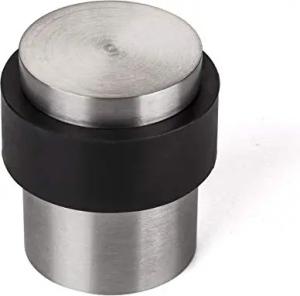 2er Set Türstopper STOPPER Bodenmontage (Ø 36 mm, Höhe 32 mm, echt Edelstahl SS201 gebürstet) Bodentürstopper mit Gummipuffer zum Schrauben und Kleben