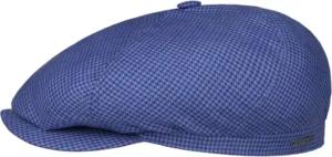Hatteras Tweed Flatcap Gemusterte Mütze Klassische Form Hahnentritt-Schirmmütze Made in Germany Herren Frühjahr Sommer beige-blau 58 cm