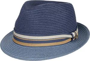 Licano Toyo Trilby Strohhut Herren Fedora UV-Schutzfaktor 40+ Ripsband Zweifarbig Krempe Frühjahr Sommer blau XL (60-61 cm)