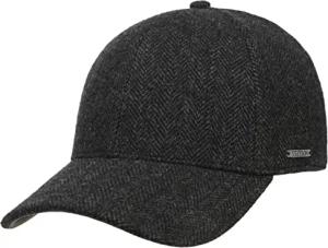 Plano Wool Cap Herren Baseballcap Schirmunterseite Leder Herringbone Design Baumwollfutter Herbst Winter anthrazit M (56-57 cm)