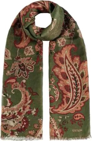 Wool Paisley Schal 100% Wolle Sommer dunkelgrün One Size