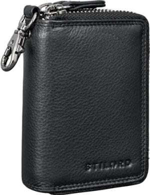 'Neal' Schlüsselbörse Leder Schlüsseletui Herren Damen mit Schlüsselanhänger Kleine Schlüsseltasche RFID mit Geschenkbox, Farbe:schwarz