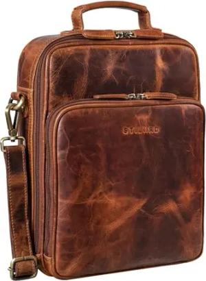 'Sven' Herrenhandtasche Leder Umhängetasche klein Schultertasche Männer 8 Zoll Tablet Herren-Tasche Messenger Bag DIN A5 Echtes Leder, Farbe:kansas - braun