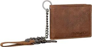 Dominik Geldbörse Herren Leder mit Kette stilvolle Slim Wallet klein Portemonnaie Herren Echtleder Geldtasche RFID Blocker Geldbeutel Vintage Farbe:Bergamo - braun