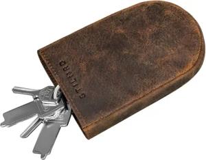 'Monty' Schlüsselglocke Leder Schlüsseletui Groß für Herren Damen Schlüsselmäppchen Schlüsseltasche Autoschlüssel Schlüsselanhänger mit Schlüsselring, Farbe:Kreta - braun