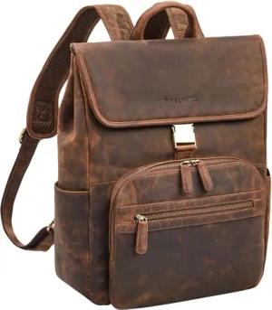 'Johnson' Lederrucksack Herren Business Vintage Rucksack für 13,3 Zoll MacBook Laptoprucksack Moderner Daypack für Uni Arbeit Office Echt Leder, Farbe:soria - braun