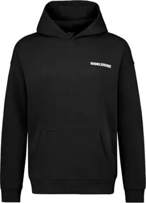 Herren Hoodie mit Schriftzug Worldwide und Kängurutasche, Farben:Schwarz, Größe Pullover:S