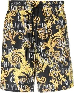 JEANS COUTURE Herren-Shorts mit Barock-All-Over-Aufdruck, elastisch und Kordelzug im Bund, zwei Taschen an der Vorderseite., Schwarz , 44