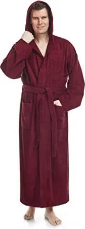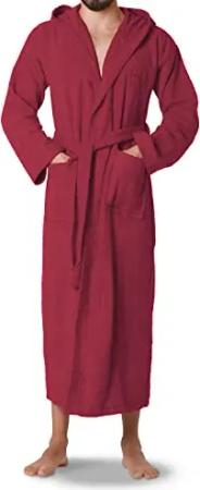 Herren Bademantel mit Kapuze, Größe: S-M Lang, Farbe: Bordeaux