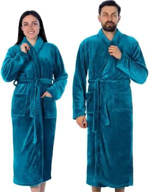 Bademantel Unisex für Damen und Herren, Ultraweicher Qualitat Flausching Kuschelig Plüsch Lange Leichter Morgenmantel für Paare mit Taschen, Blau