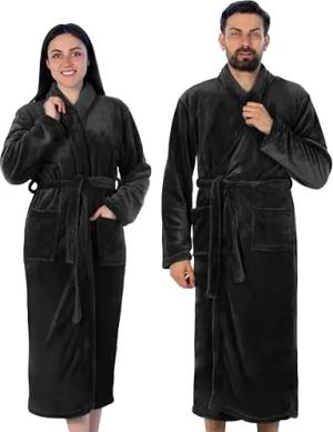 Nevada Bademantel Damen Herren XL anthrazit schwarz Mikrofaser Saunamantel Coral Fleece Morgenmantel