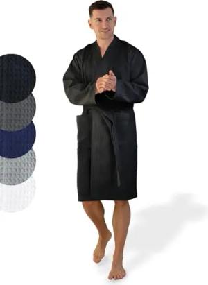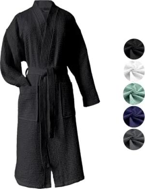 Bademantel Waffelpique Reisebademantel Saunamantel 100% Baumwolle Oekotex leicht schnelltrocknend hautfreundlich für Damen und Herren Typ881 Schwarz M