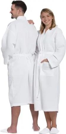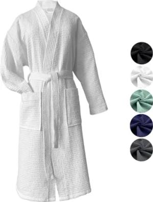 Bademantel Waffelpique Reisebademantel Saunamantel 100% Baumwolle Oekotex leicht schnelltrocknend hautfreundlich für Damen und Herren Typ881 Weiß L