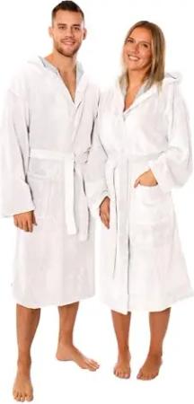 Bademantel Microfaser mit Kapuze - RIGA - für Herren und Damen Größe L/XL Farbe: creme