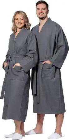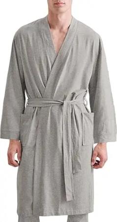 Unisex-Bademantel Hausmantel, Kimonokragen, Gürtel, softe Innenseite, Seitentaschen, formstabiler Gürtel, Größe: M/L, Farbe: silber