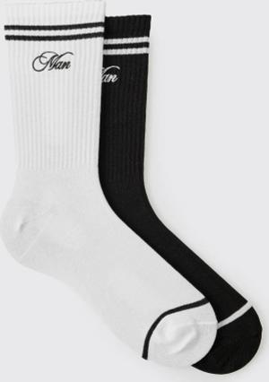 2er-Pack gestreifte Sport-Socken mit Man-Stickerei - Mehrfarbig - ONE SIZE, Mehrfarbig