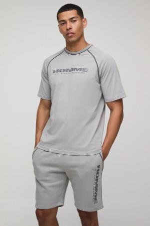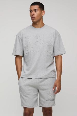 Kastiges Oversize T-Shirt mit Homme Print & Shorts - Grau - S, Grau