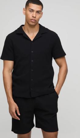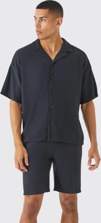 Strukturiertes Jersey-Hemd mit Kragen und Shorts - Schwarz - M, Schwarz