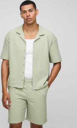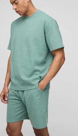 Oversize Man T-Shirt & Shorts in Waffeloptik - Grün - S, Grün