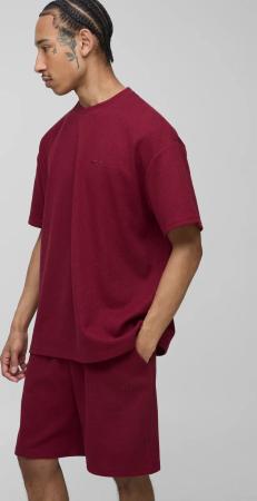 Oversize Man T-Shirt & Shorts in Waffeloptik - Burgund - S, Burgund