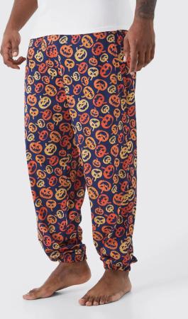 Plus Halloween Loungewear-Jogginghose mit Kürbis-Print - Blau - XXL, Blau