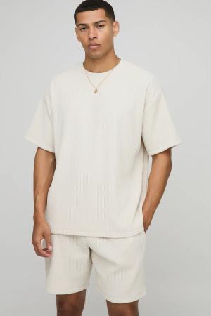 Strukturiertes geripptes Oversize T-Shirt & lockere Shorts - Grau - S, Grau