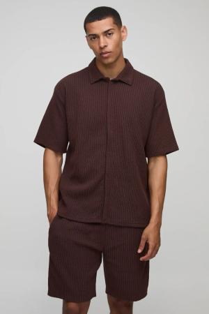 Zweifarbiges geripptes Oversize Jersey-Hemd & lockere Shorts - Braun - XS, Braun