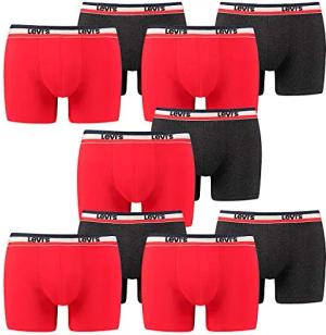 10 er Pack Levis Boxer Brief Boxershorts Men Herren Unterhose Pant Unterwäsche, Farbe:786 - Red/Black, Bekleidungsgröße:S