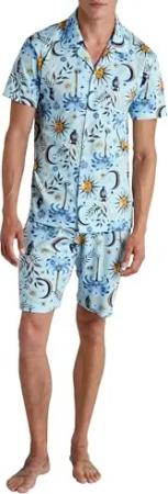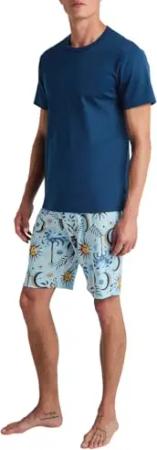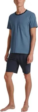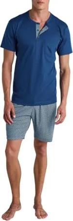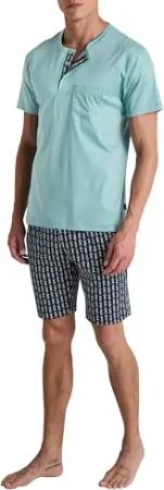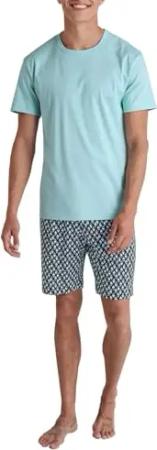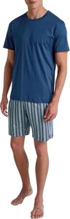 Relax Imprint Kurz-Pyjama Herren, aus 100% Baumwolle, Hose mit stoffbezogenem Gummibund