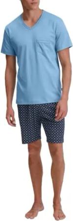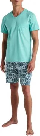 Relax Streamline Kurz-Pyjama, V-Neck Herren, aus 100% Baumwolle, Hose mit stoffbezogenem Gummibund