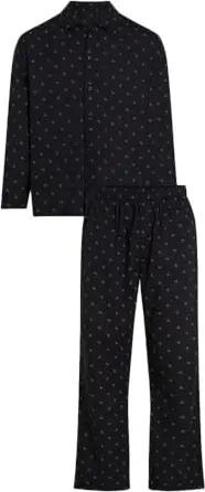 Pyjama-Set für Herren, Schwarz, Knopf-Down, Schwarz , XL