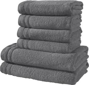 Handtuchset, Frottierset Heidelberg 6-TLG. 100% Baumwolle anthrazit - leichte Qualität, saugstark, schnelltrocknend, kompakt - ideal für Sport, Strand, Reisen