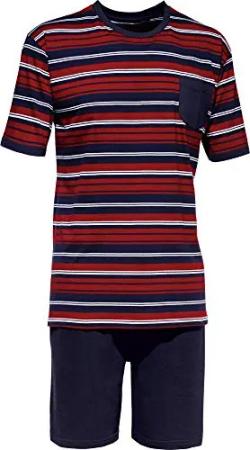 Herren Schlafanzug Marine Größe 58, Pyjama, Shorty, Zweiteiler, Single-Jersey, Streifen - T-Shirt und Short, mit Brusttasche, Komfortbund und Bindeband