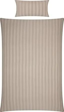 Mako-Damast Bettwäsche-Set Fürth mit Streifen, Bettbezug, Taupe Größe 40x80 cm / 135x200 cm - temperaturausgleichend, Kochfest, mit Reißverschluss, 100% Baumwolle