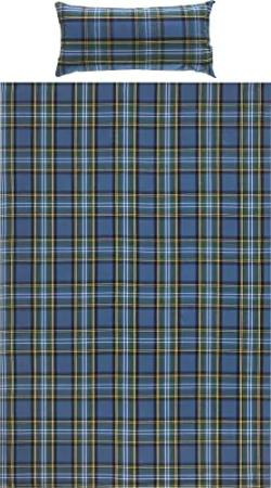warme Bettwäsche Flanell buntgewebt blau-grün Größe 40x80 cm / 155x240 cm - hautsympathisch, atmungsaktiv, samtweich, 100% Baumwolle, mit Knopfverschluss