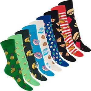 Damen & Herren Bunte Motiv Socken (9 Paar) Lustige Baumwoll Socken - Food 41-46