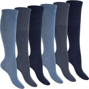 Damen & Herren Gesundheits Kniestrümpfe (6 Paar) Nahtfreie Diabetiker Strümpfe - Blau 39-42