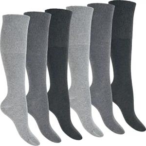 Damen & Herren Gesundheits Kniestrümpfe (6 Paar) Nahtfreie Diabetiker Strümpfe - Classic Grey 39-42