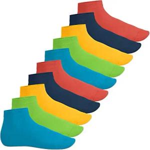 Kinder Baumwoll Kurzschaft Socken (10 Paar) mit abgesetzter Ferse und Spitze - Funfarben 35-38